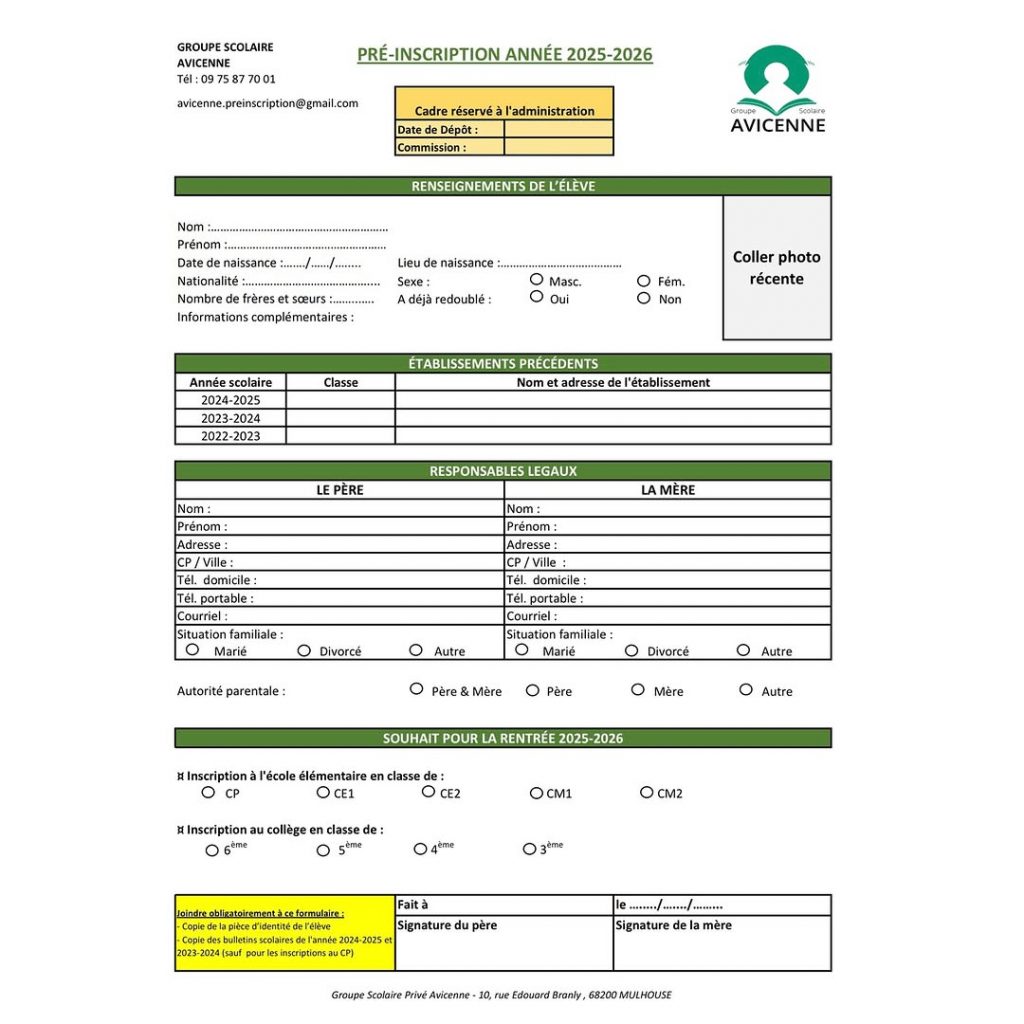 Vous pouvez remplir directement le formulaire de pré-inscription ci-joint et nous l’envoyer par email à l’adresse suivante : .