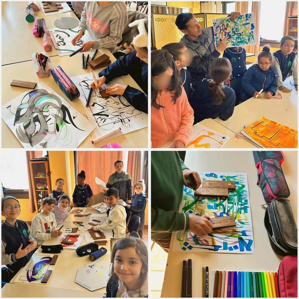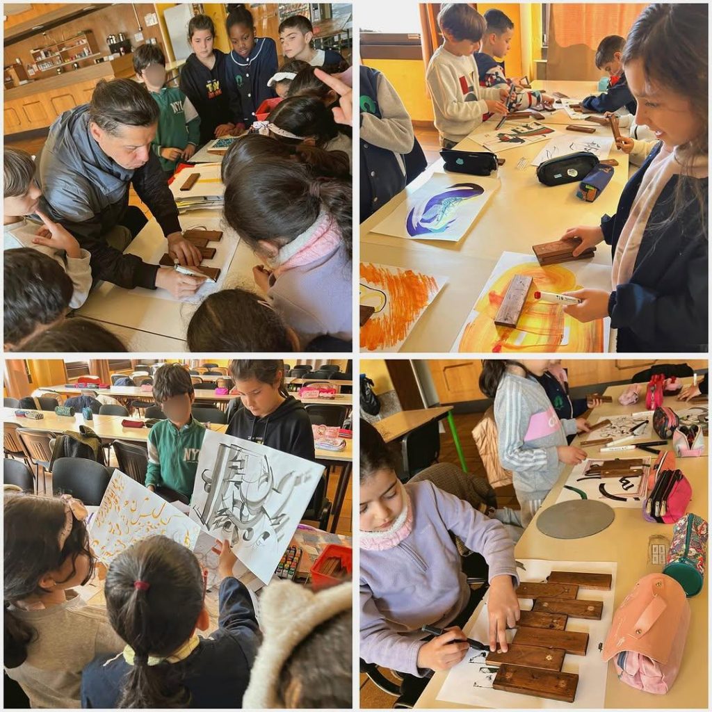 Le thème était la calligraphie, la géométrie et la liberté d’imaginer… un belle thématique pour nos élèves qui ont su mettre en avant leur créativité sous les conseils du talentueux artiste.