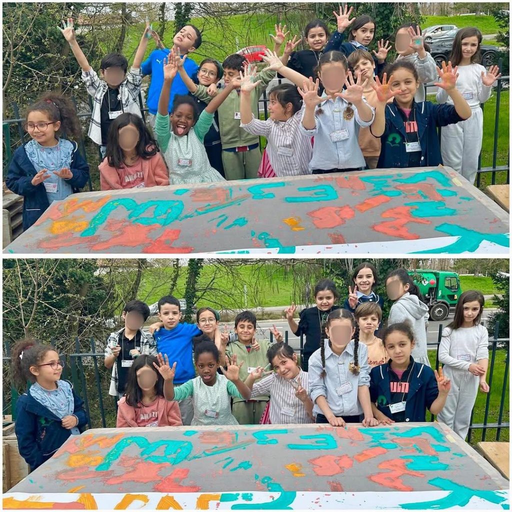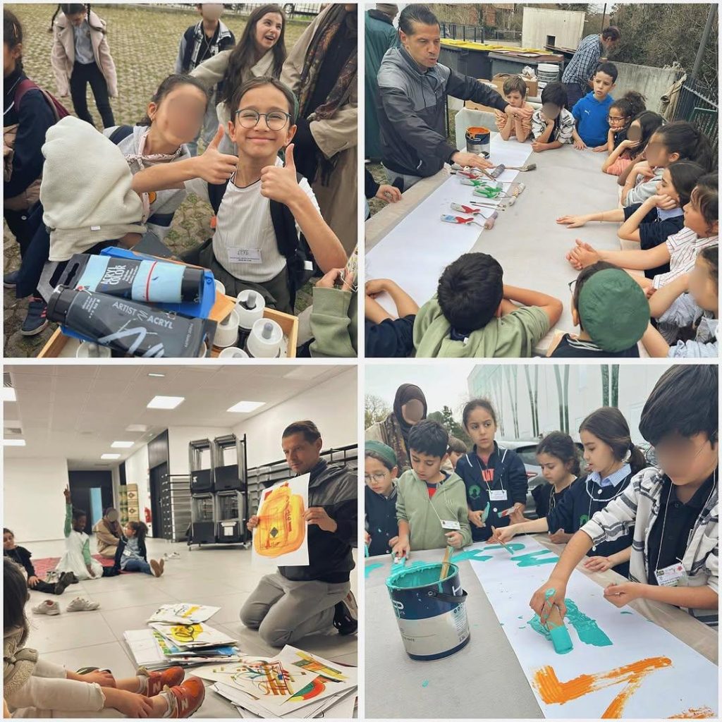 L’objectif de ce projet était de collaborer avec des élèves de la mosquée An Nour sur une œuvre collective.